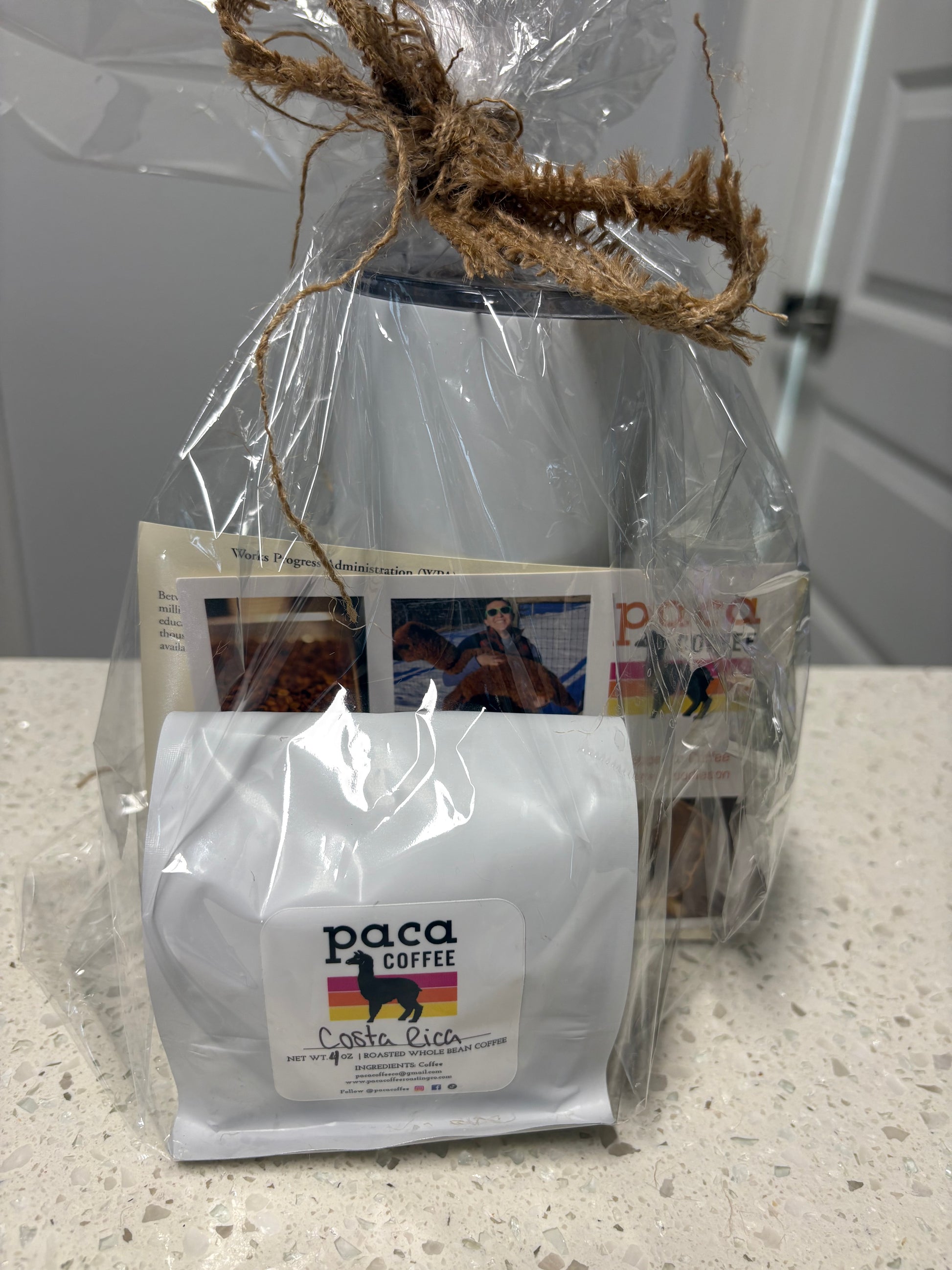 Includes...16 oz tumbler, 4 oz coffee, business card, post card #wherewillyoupacacoffee?